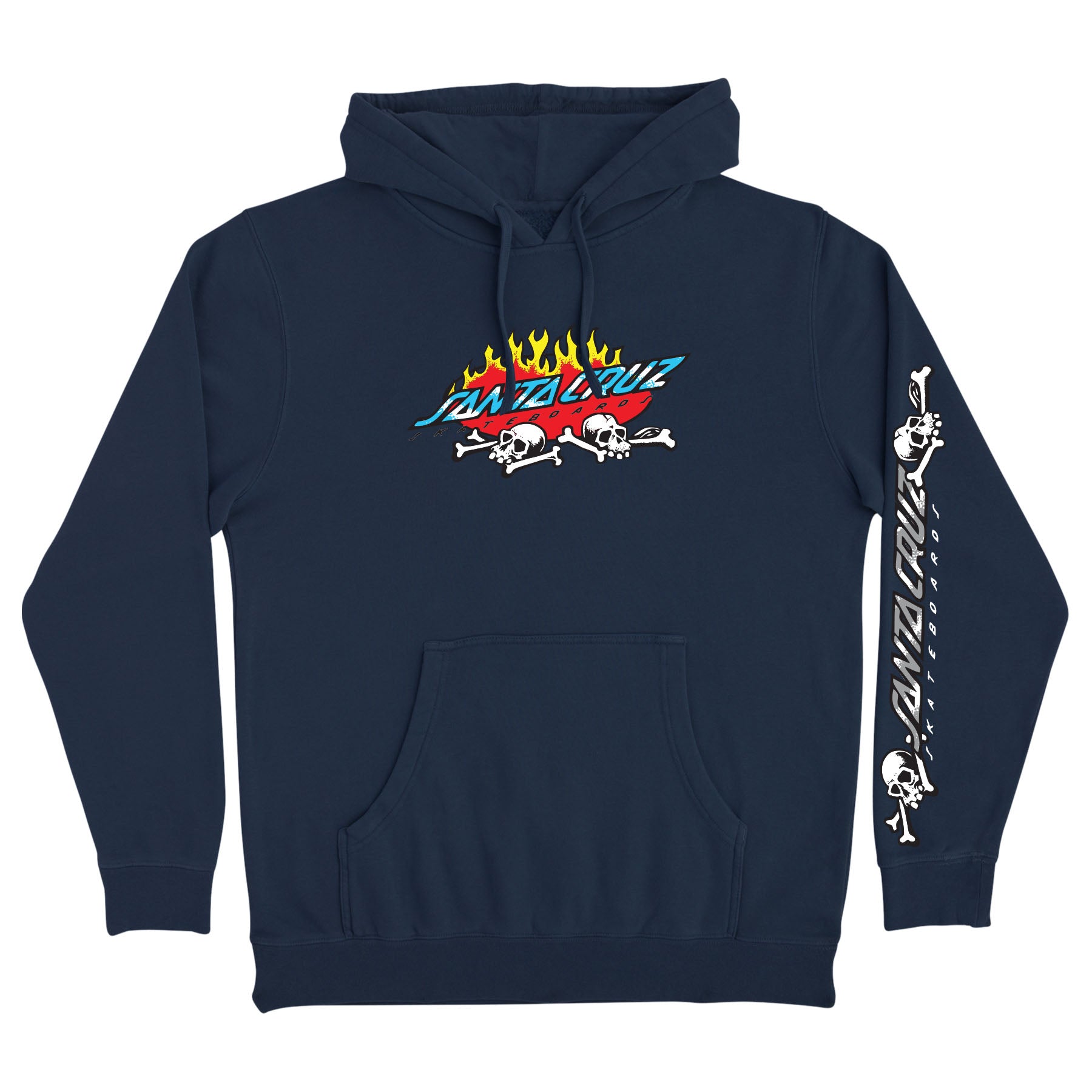 The Santa Cruz Salba Voodoo Pit men's heavyweight fleece hooded pullover sweatshirt features medium front and large sleeve Santa Cruz Salba Voodoo Pit artwork printed in soft hand ink.